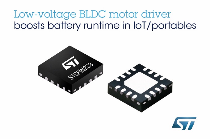 ST마이크로일렉트로닉스(STMicroelectronics, 이하 ST)가 단일 션트와 3 션트 브러시리스 모터 드라이브를 겨냥하여 소형 3 x 3mm 패키지에 200mΩ 1.3Arms 전력단을 통합한 업계 최초의 저전압 모터 드라이버 STSPIN233을 출시했다.