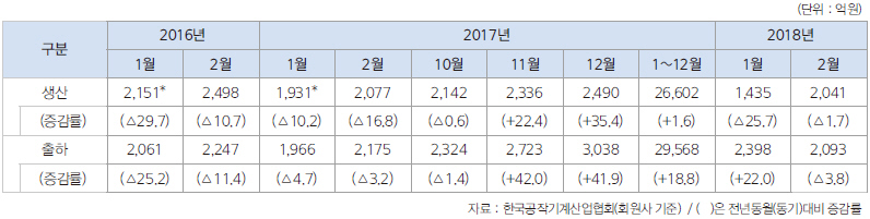 ▲ 2016년 ~ 2018년 2월 공작기계 수주