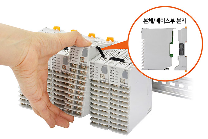 이외에도 TMH 시리즈는 본체와 베이스부 분리가 가능한 구조로 설치 및 관리가 편리하며, 제품 구동 중, 모듈에 문제가 있을 시, 베이스부의 측면 커넥터를 통해 전원 및 통신이 연결되기 때문에 설비의 중단 없이 본체 모듈을 교체 및 제거할 수 있어 유지보수의 편의성을 제공한다.