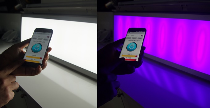 스마트폰으로 LED등의 UV기능을 제어하는 모습