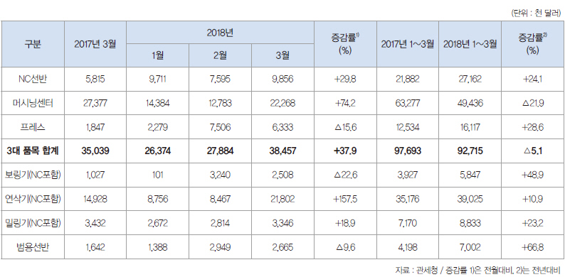*본 리포트는 한국공작기계산업협회에서 발표한 ‘2018년 3월 공작기계 시장 동향’을 기반으로 작성되었다.