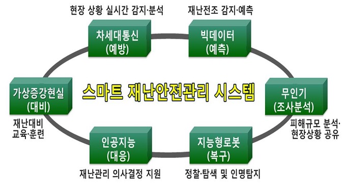 우선, 예측·예방·대비·대응·복구·조사분석 등 재난관리의 세분화된 주기별 기술혁신을 위하여 재난관리 주기별 6대 혁신성장동력 기술을 활용할 계획이다.