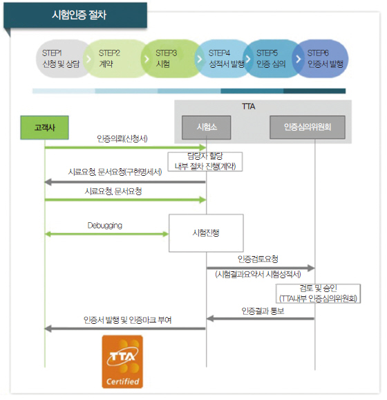 인증 참여를 희망하는 기업은 시험인증신청서, 구현명세서(시험인증 대상의 구현 기능 및 정보를 선언하기 위한 문서), 자체 검증 확인서를 작성하여 한국정보통신기술협회에 제출하면 된다.