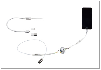 이 제품은 스마트 폰에 쉽게 연결할 수 있도록 IR App Connector라고 불리는 USB 어댑터가 마이크로 USB 플러그와 USB-C 및 USB-A용 어댑터와 함께 제공된다.