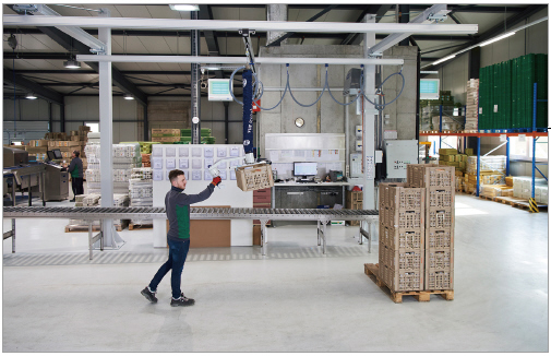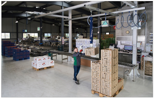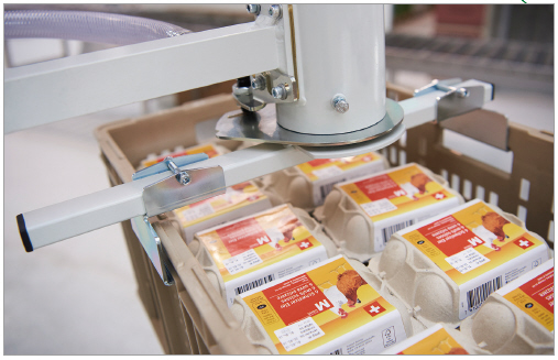 또한, 직원들은 같은 진공 리프터를 사용하여 달걀로 가득 찬 상자를 운반할 수 있다. Dominik Gmur는 “변환은 쉽게 마스터링 된다. 직원들이 장비를 신속하게 켜고 끔으로써, 귀중한 에너지를 절약할 수 있어, 무선 원격 제어 시스템을 매우 높이 평가하고 있다”고 말했다.