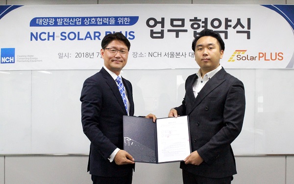 산업 설비 유지 보수 제품 제조 기업인 NCH코리아가 국내 최초 태양광 모듈 전문 세척 및 유지 보수 서비스 제공 기업인 (주)솔라플러스컴퍼니와 태양광 발전산업 상호 협력을 위한 업무협약식을 갖고 태양광 모듈 전용 세척제인 ‘솔라워시(SOLAR Wash)’를 발표했다.