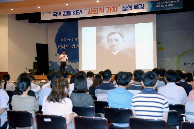 한국에너지공단은 7월 5일 15시, 본사 대강당에서 ‘공공기관의 사회적 가치 실현과 KEA 적용 방안’이라는 주제로 명지대학교 최현선 교수(대통령 직속 정책기획위원회 위원)를 초빙하여 전직원을 대상으로 교육을 실시했다.