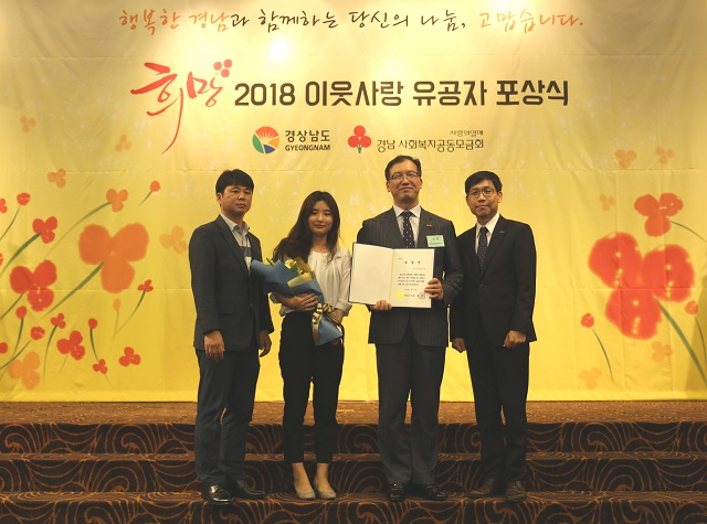 경상남도와 경남사회복지공동모금회가 공동 주최하는 ‘희망 2018 이웃사랑 유공자 포상식’은 참된 이웃사랑을 실천한 유공자의 선행을 널리 알리고 포상함으로써 건강한 기부문화와 따듯한 나눔문화를 확산하고자 매년 개최되고 있다.