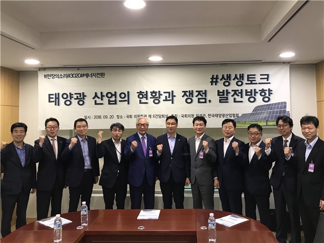 한국태양광산업협회는 지난 9월 20일, 더불어민주당 위성곤 의원과 공동으로 국회의원회관 제6간담회실에서 ‘태양광산업의 현황과 쟁점, 발전방향 모색 생생토크’를 개최했다.