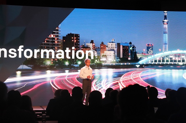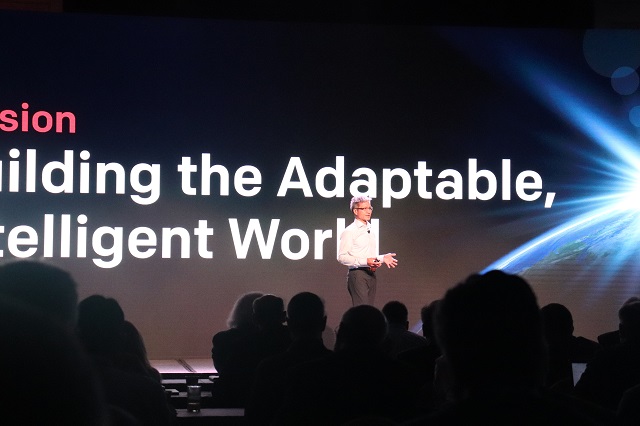▲ 자일링스 CEO 빅터 펭은 업계 최초의 적응형 컴퓨팅 가속화 플랫폼 Versal을 공개했다. <사진 : 김동원 기자>