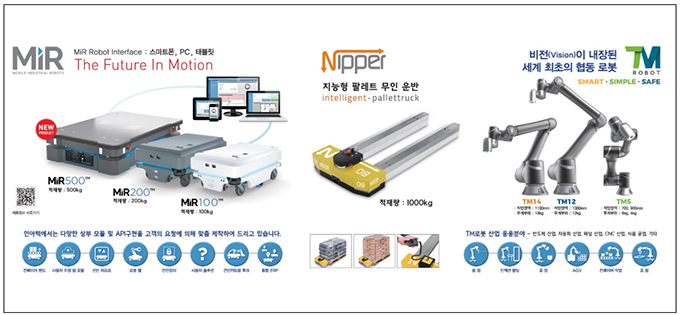인아텍은 이번 전시회를 통해, 로봇 솔루션 공급 기업으로서의 면모를 선보일 계획이다. 스마트 자율주행 로봇 MiR, 협동로봇 TM Robot, 팔레트 운송 로봇 Nipper 등 인아텍이 국내에 공급 중인 다양한 로봇 라인을 전시한다.