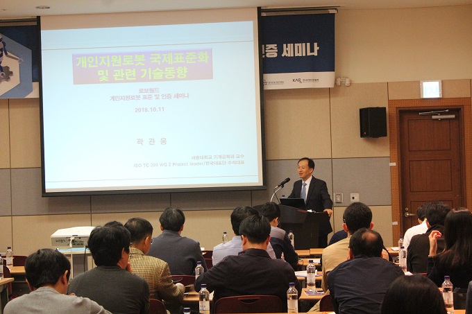 한국로봇산업진흥원은 지난 11일 킨텍스 제1전시장 세미나룸 207B에서 개인지원로봇(ISO 13482) 표준 및 인증 세미나를 개최했다. 이 세미나는 2018 로보월드의 부대행사로 진행됐다.