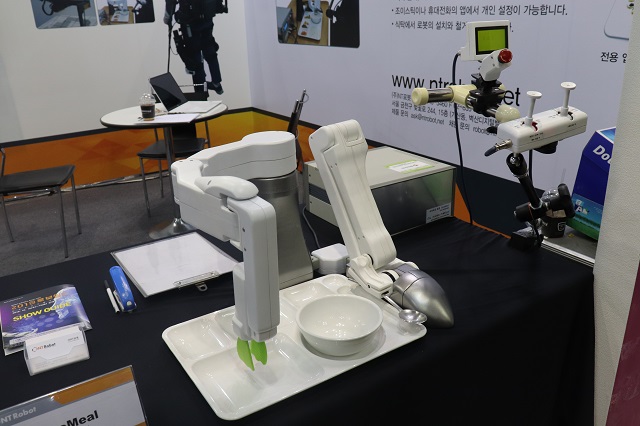 ▲ 이번 전시회에서 NT로봇은 식사보조 로봇 ‘케어밀’을 선보였다. <사진 : 김동원 기자>