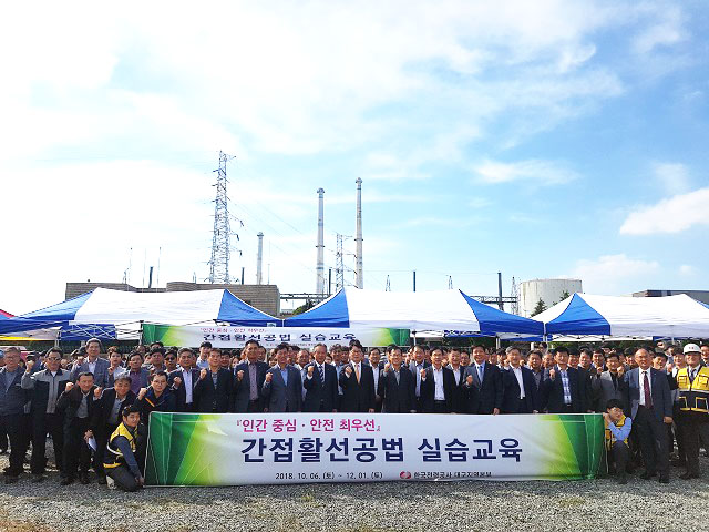 한국전력 대구지역본부(본부장 권오득)는 지난 10월 10일 대구광역시 달서구 월암동 설비진단 아카데미에서 배전 협력사 대표, 일용전공 협의회 및 한전 관계자 등이 참여한 가운데 「간접활선공법 조기정착 및 신공법에 대한 배전전공의 실습교육」을 시작했다.