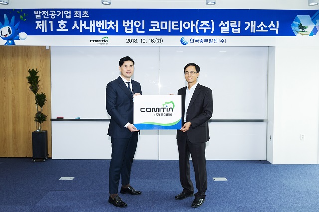 한국중부발전(사장 박형구)은 지난 10월 16일 중부발전 본사에서 제1호 사내벤처 법인 ‘코미티아’ 설립 개소식을 개최했다.