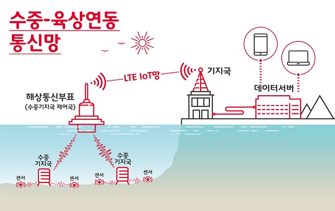 SK텔레콤과 호서대는 시연을 위해 해운대 인근 바다 15m 수심에 수중 기지국과 센서를 설치했다. 센서가 측정한 바닷속 정보는 음파를 통해 수중기지국에서 해상 통신 부표(수중 기지국 제어국)로 전달된다.
