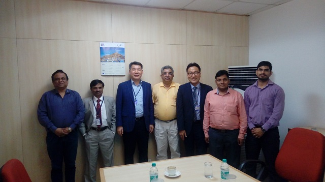 ▲ KERI 김맹현 시험부원장(왼쪽 3번째)을 비롯한 관계자들이 인도 민간 중전기기 제조사인 'CnS Electric Ltd'을 방문해 시험인증 홍보 활동을 진행했다. <사진 : 한국전기연구원 제공>