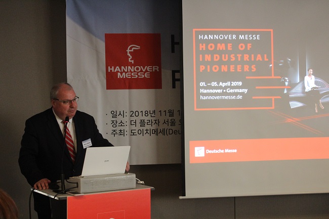 지난 11월 14일, 더 플라자 서울 호텔에서 개최된 2019 하노버산업박람회 기자간담회에서 행사의 주최측인 도이치메세의 마르코 지버트 대회협력 이사는 “세계화와 디지털화는 산업계의 변혁을 주도하고 있다”며, “하노버산업박람회는 이 두 가지 중요한 주제와 현재 업계가 직면하고 있는 과제에 대해 글로벌 기업, 제조업과 정치계가 모여 논의하는 장이 될 것”이라고 말했다.