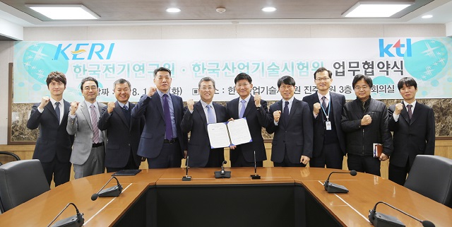 과학기술정보통신부 국가과학기술연구회 산하 정부출연연구기관인 한국전기연구원(KERI, 원장 최규하)과 산업통상자원부 산하 국내 유일 공공 종합시험인증기관인 한국산업기술시험원(KTL, 원장 정동희)이 연구개발 역량 및 시험평가 경쟁력 강화를 위해 11월 27일(화) 한국산업기술시험원 진주본원에서 협약을 체결했다.