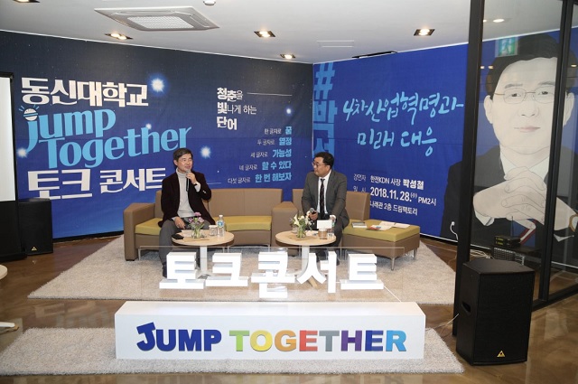 한전KDN 박성철 사장이 지난 11월 28일, 동신대학교 대학생과 함께하는 ‘Jump Together’ 토크콘서트에 참석해 ‘4차 산업혁명과 미래 대응’이라는 주제로 강연을 진행했다.