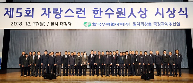 한국수력원자력(사장 정재훈, 이하 한수원)이 17일 경주 본사에서 ‘제5회 자랑스런 한수원人상’ 시상식을 개최했다.