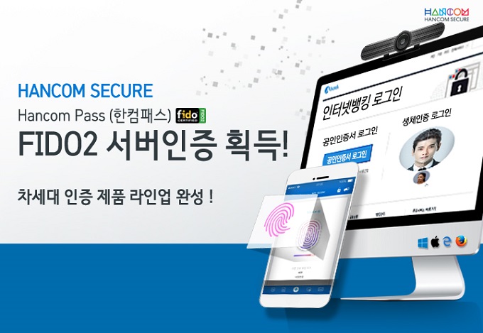 한컴시큐어는 2016년 ’제큐어패스(XecurePass)’로 ‘FIDO’ 인증을 획득한 데 이어 지난달 ‘FIDO 상호운용성 테스트‘에 ‘한컴패스(Hancom Pass)’로 서버 인증을 진행, 보안인증 서버 및 인증장치 간의 호환성 검증을 통해 ‘FIDO2’ 인증을 획득했다.