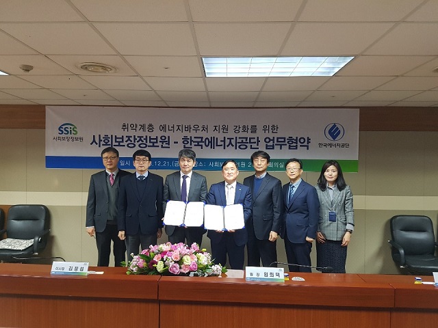 한국에너지공단(이사장 김창섭)은 지난 12월 21일, 사회보장정보원(원장 임희택)과 사회보장정보원 본사에서 ‘에너지취약계층 지원 인프라 강화’를 위한 업무협약을 체결했다.