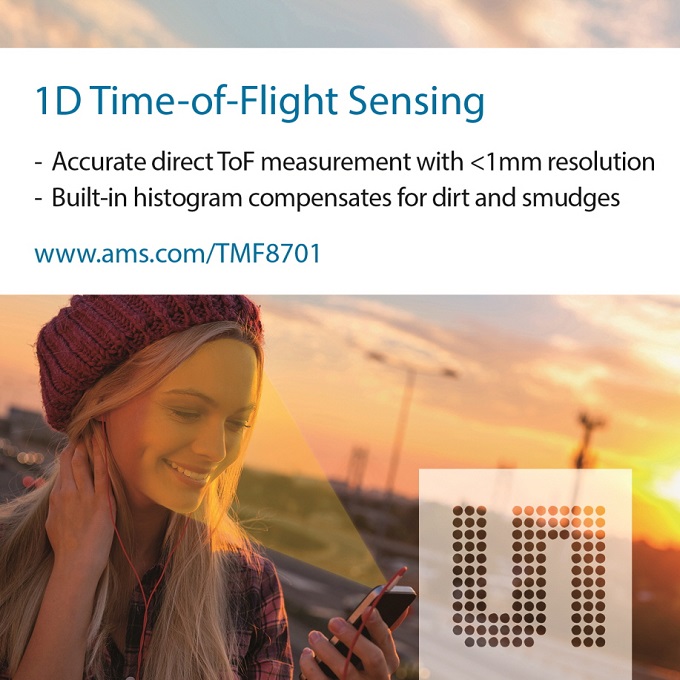 ams 통합 광학 센서 사업부의 데이브 문(Dave Moon) 선임 제품 마케팅 매니저는 “스마트폰 제조사들은 오늘날의 1D FoT 센서의 결점이 무엇인지 명확히 알고 있다. 크기가 너무 크고, 역광 상황이나 디스플레이 화면이 더러울 때 성능이 확연히 저하되는 것”이라며 “TMF8701은 오염과 간섭에 대한 우려를 크게 줄이는 보다 작은 풋프린트의 디바이스로서, 1D FoT 센서의 결점과 관련한 모든 우려 사항들을 해소한다”고 말했다.