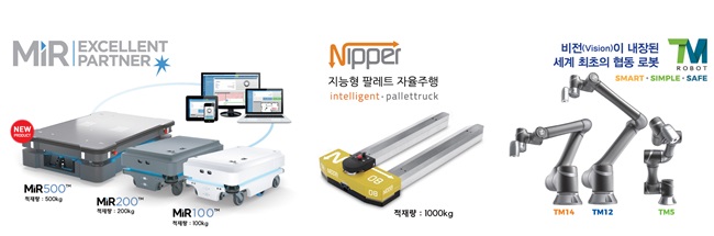 인아텍은 이번 전시회를 통해 스마트 자율주행 로봇 MiR, 비전이 내장된 세계 최초의 협동로봇 TM Robot, 팔레트 운송 로봇 Nipper 등을 소개한다.