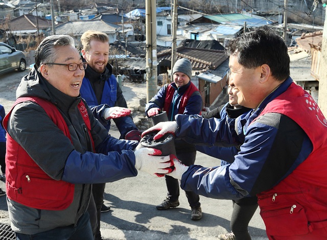 지멘스는 서울 노원구에 위치한 백사마을을 찾아 연탄 난방을 하는 20여 가구에 연탄 나눔 봉사 활동을 펼쳤다.