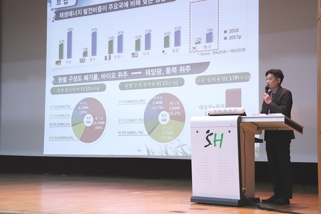 ▲ 한국에너지공단 김강원 팀장이 신재생에너지 정책 방향에 대해 강연하고 있다. <사진 : 김동원 기자>