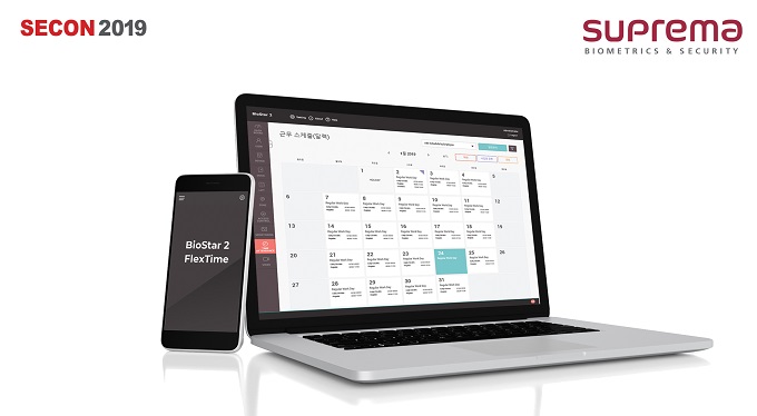 특히 슈프리마는 국내 근태관리시장의 화두인 주52시간근무제 및 유연근무제에 특화된 바이오스타 2 플렉스타임 (BioStar 2 Flextime)을 최초로 공개할 계획이다. 바이오스타 2 플렉스타임은 52시간 근무제 도입에 필수적인 기능인 근무시간관리, 다양한 유연근무설정, 연장근로 신청 및 결재 그리고 모바일을 통한 개인별 근태조회 기능을 제공할 뿐 아니라 최고의 바이오인식기술을 활용하여 정확한 출퇴근 관리로 부정 인증을 방지할 수 있으며 출입통제, 영상관제와 통합기능과 ERP, 그룹웨어와 연동을 제공한다.
