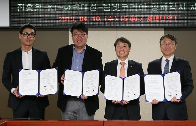 KT(회장 황창규)는 지난 10일 대전정보문화산업진흥원(이하 대전진흥원), 화력대전, 팀넷코리아와 함께 대전진흥원에서 ‘영상 콘텐츠 산업분야 첨단 신기술 서비스 모델 발굴 및 보급 확산을 위한 MOU’를 체결했다.