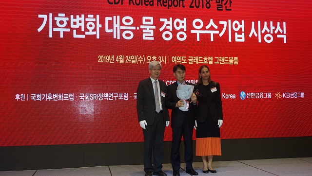 ▲ 한전이 ‘2018 CDP 기후변화 대응 우수기업 시상식’에서 에너지&유틸리티 부문 수상을 했다. <사진 : 한전>