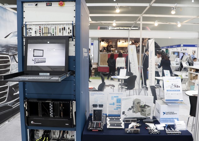 ▲NI가 오토모티브 테크놀로지 엑스포에서 전시장을 마련해 자동차 전장 테스트 솔루션을 선보였다. <사진 : 김동원 기자>