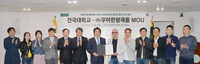 건국대학교는 배달앱 1위 ‘배달의민족’을 운영하는 우아한형제들과 자율주행 배달로봇의 상용화 및 사람과 로봇 간의 상호작용 연구 협력을 위한 제휴 양해각서(MOU)를 체결했다.