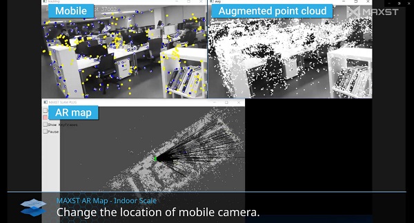 국내 증강현실(AR) 원천기술 보유기업 맥스트(MAXST)가 최근 모바일 기기의 카메라만으로 실내 공간을 3D맵으로 재현, 추적하는 비주얼 슬램(Visual SLAM) 기술개발에 성공했다.