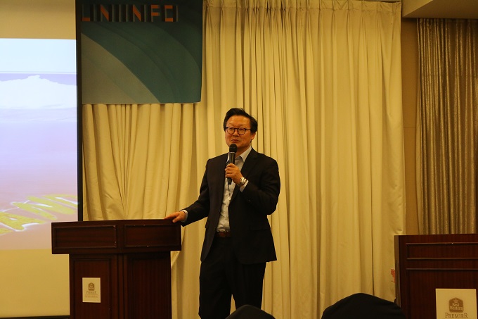 사진1. 뉴랜드 한국지사는 국내 총판사인 유니정보와 함께 지난 4월 10일 서울 구로에 위치한 베스트웨스턴 프리미어 구로호텔에서 뉴랜드데이(Newland Day) 2019를 개최했다. 성태호 지사장이 인사말씀을 전하고 있다.