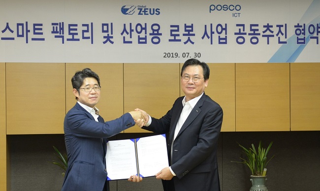 포스코ICT 판교 사옥에서 열린 협약식에는 제우스 이종우 대표이사, 포스코ICT 손건재 대표이사를 비롯해 양 사의 임직원 등이 참석했다.