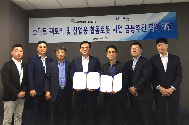 협약식은 유니버설로봇 코리아 김해랑 사장과 포스코 ICT의 손건재 사장을 포함하여 포스코 ICT의 오숭철 전무, 안승희 그룹장, 황상돈 팀장과 유니버설로봇 코리아의 김병호 부장, 성황현 과장이 참석한 가운데 지난 7월 23일 진행됐다.