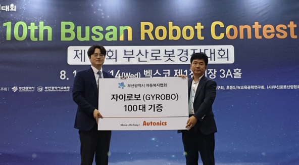 산업 자동화 전문기업 오토닉스가 지난 13일 부산 벡스코(BEXCO)에서 열린 ‘2019 부산로봇 경진대회’에서 부산아동복지협회에 오토닉스가 자체 개발한 자이로보(GYROBO) 100대를 기증했다.
