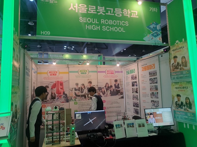 서울로봇고등학교는 볼랠런싱 로봇, 2축 자기중심 로봇 등을 전시했다.