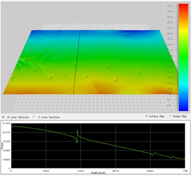 그림2. 자유곡면 3차원 측정기술 통해 얻은 2차 전지용 초박판 표면 결함 검출 결과 측정 정밀도 30% 이상 향상시켰다.