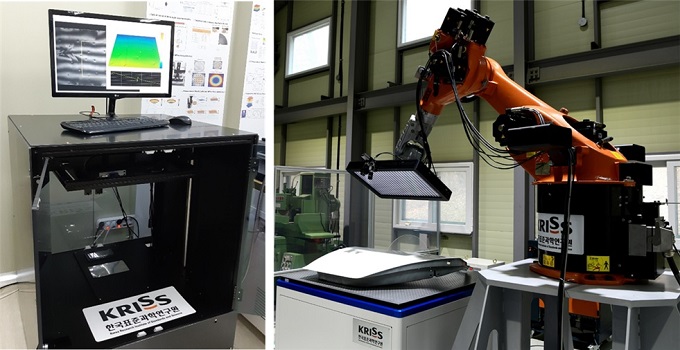 사진1. KRISS 김영식 책임연구원이 개발한 자유곡면 3차원 측정장비-(왼쪽) 미세표면 형상 측정용 검사 장비/(오른쪽) 대영역 형상 측정용 검사 장비
