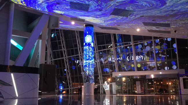 ‘서클6’는 전체 높이 약 9미터의 원통형 기둥을 초 고해상도의 플렉시블 LED로 깔끔하게 감싸고 있으며, 키오스크와 함께 구축돼 LED 디스플레이를 통한 다양한 영상 연출과 웰컴이벤트 등을 진행할 수 있다.