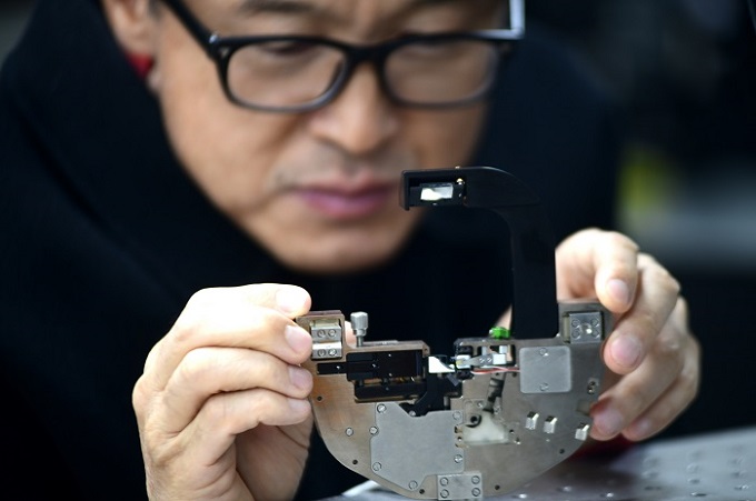 ▲ KRISS 나노구조측정센터 이은성 책임연구원이 광유도력 현미경의 중요 부품인 미세탐침과 오목거울의 정렬 상태를 점검하고 있다.