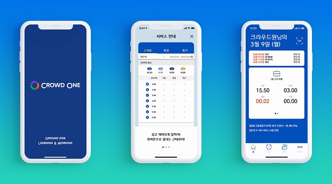 ▲ ‘크라우드원(Crowd.One)’으로 일별 근무 스케줄 현황 및 월 누적 근무 시간을 확인할 수 있는 서비스 화면