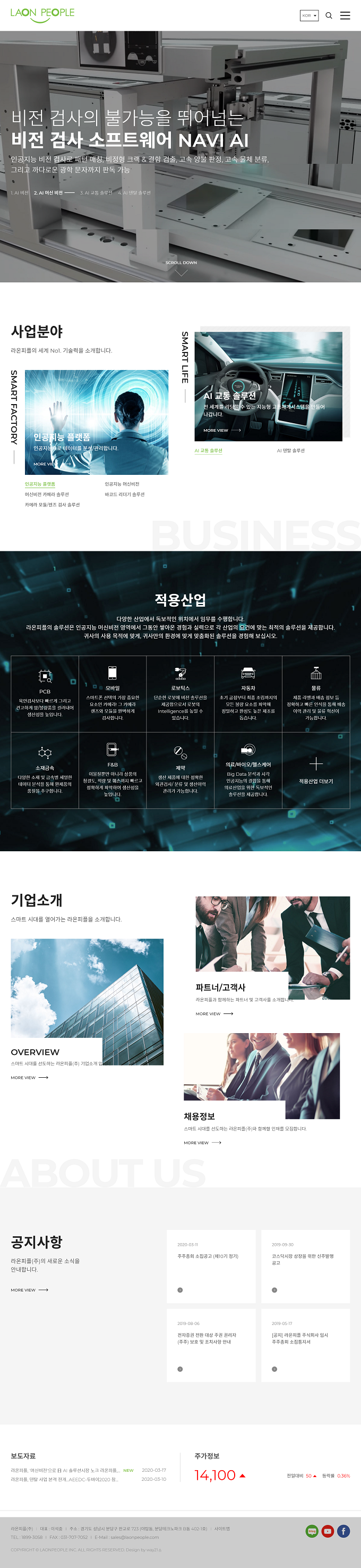 기존의 홈페이지는 라온피플의 솔루션을 중심으로 쉽게 접근할 수 있게 만들어졌다면, 이번 홈페이지에서는 라온피플의 최근 제품군 모두가 AI를 탑재하고 있고, 향후 전개될 AI 세상에 대응하고자 하는 라온피플의 생생한 모습과 미래전략을 홈페이지에 구성하였다.