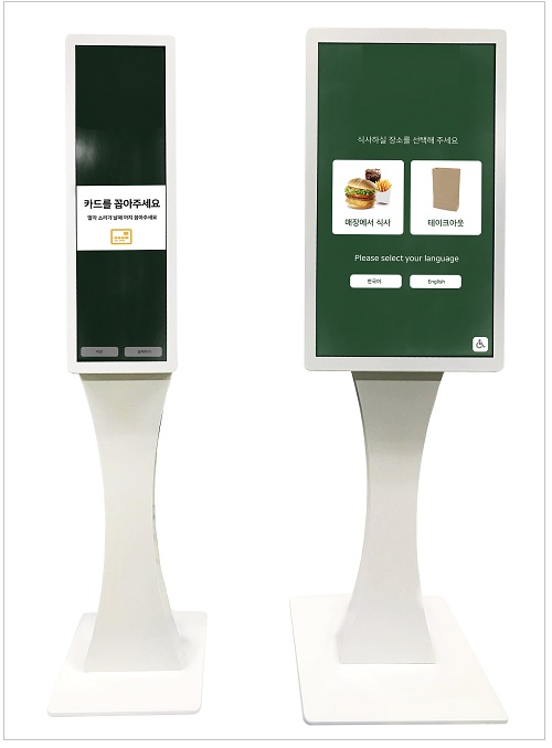 최첨단 키오스크 토털 솔루션 제공업체인 키오스크코리아(대표이사 이명철)는 패스트푸드점, 음식점 등 외식업계의 메뉴 선택에 활용할 수 있는 최신형 무인 터치스크린 메뉴판 29인치와 32인치 소형 키오스크 ‘키오스크 7 슬림 시리즈’를 선보였다.