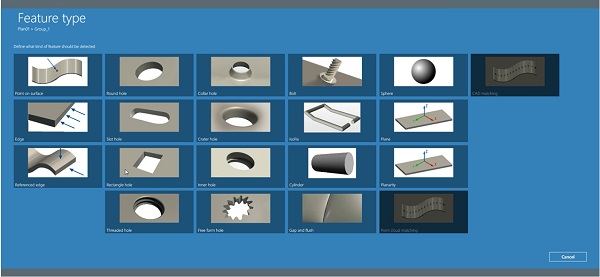 그림 5. 내장된 소프트웨어는 구멍, 볼트, 모서리 등과 같은 모든 형상을 측정한다.